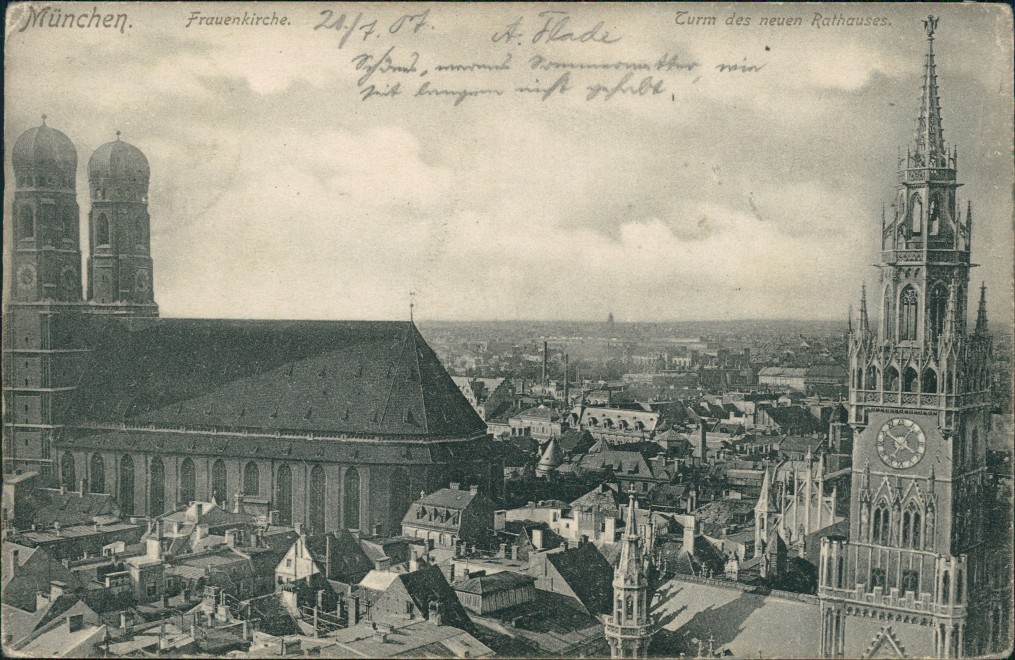 Postcart: Frauenkirche und Turm neuen Rathaus - Munich