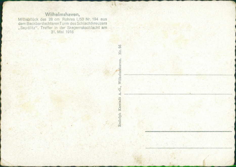Postcart: Mittelstück des Rohres des Schlachtkreuzers Seydlitz - Wilhelmshaven
