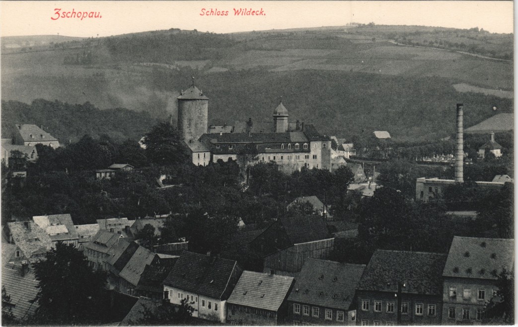 Postcart: Stadt Fabrik Schloß Wildeck - Zschopau