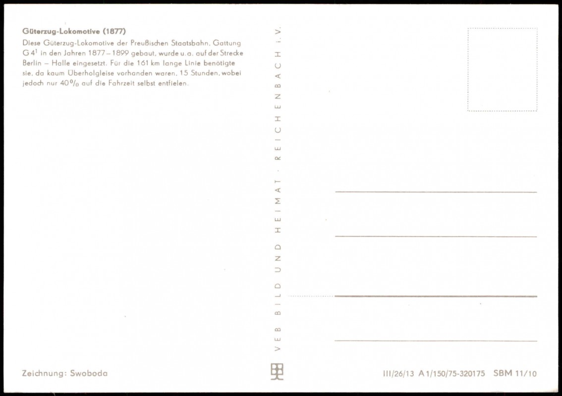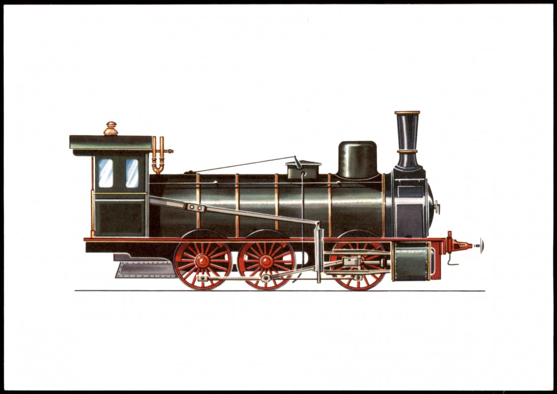 - Motiv-AK Eisenbahn Güterzug Lokomotive anno 1877 (Zeichnung Swoboda)