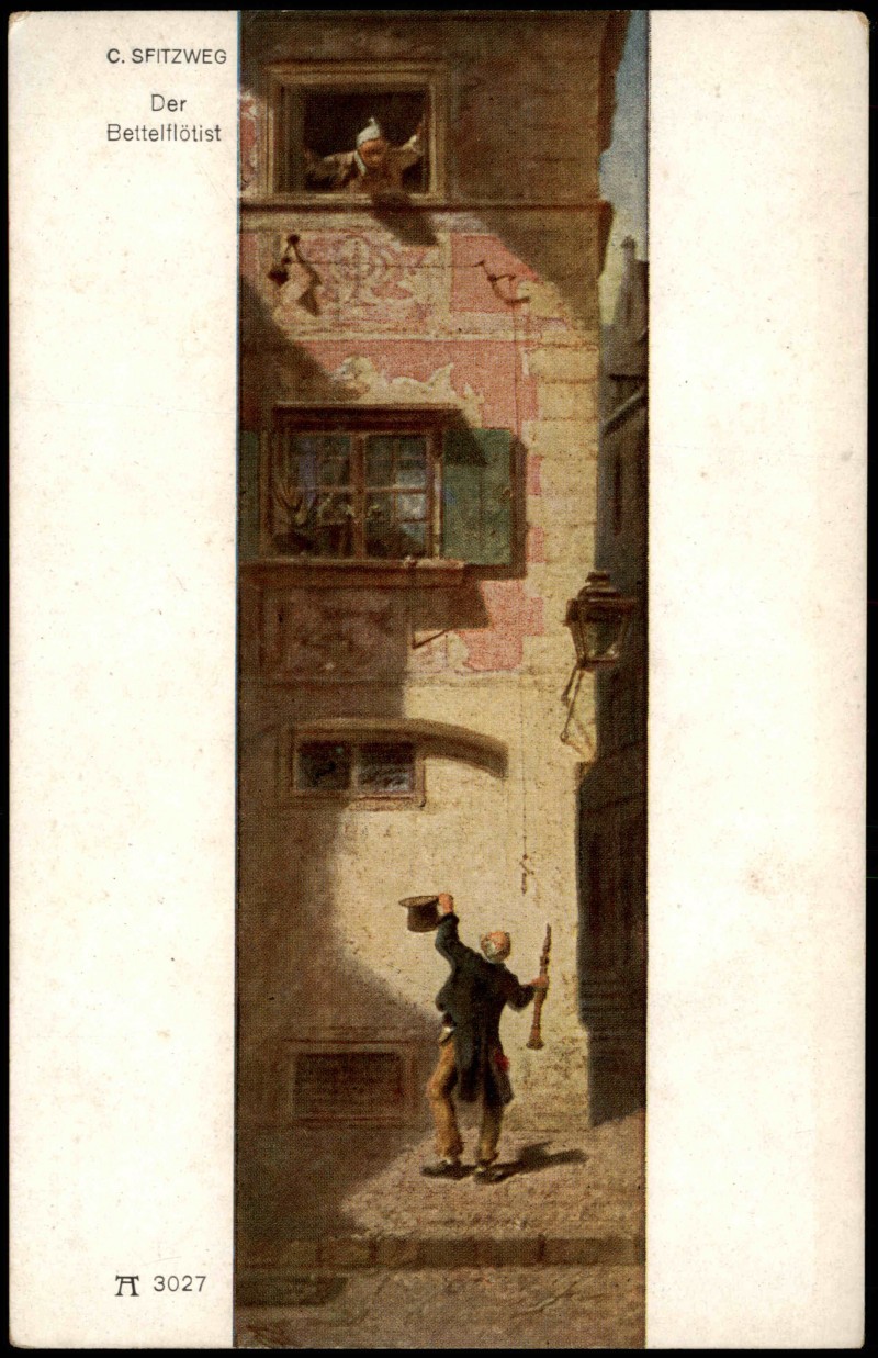 - C. SPITZWEG Der Bettelflötist Künstlerkarte: Gemälde / Kunstwerke