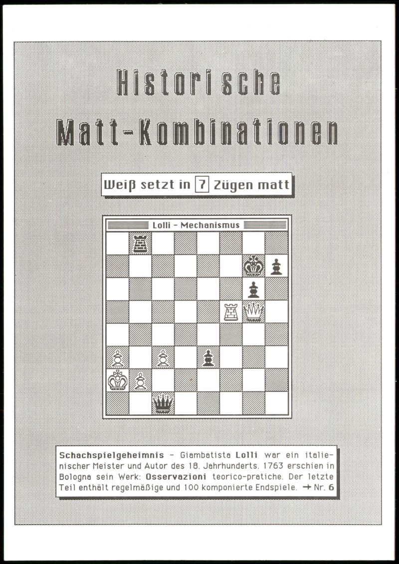 - Schach-Spiel Chess-Game Motivkarte Historische Matt-Kombination