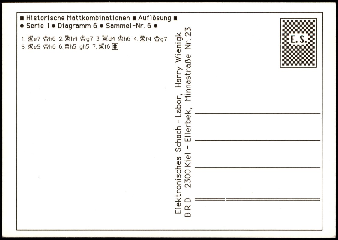 Postcart: Schach-Spiel Chess-Game Motivkarte Historische Matt-Kombination