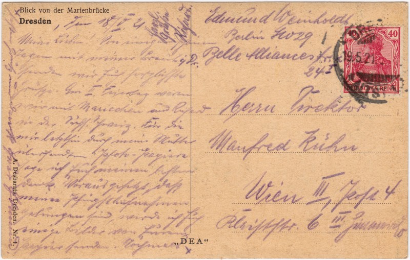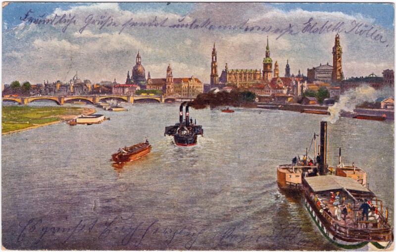 Postcart: Künstler AK - Panorama mit Dampfern - Innere Altstadt-Dresden