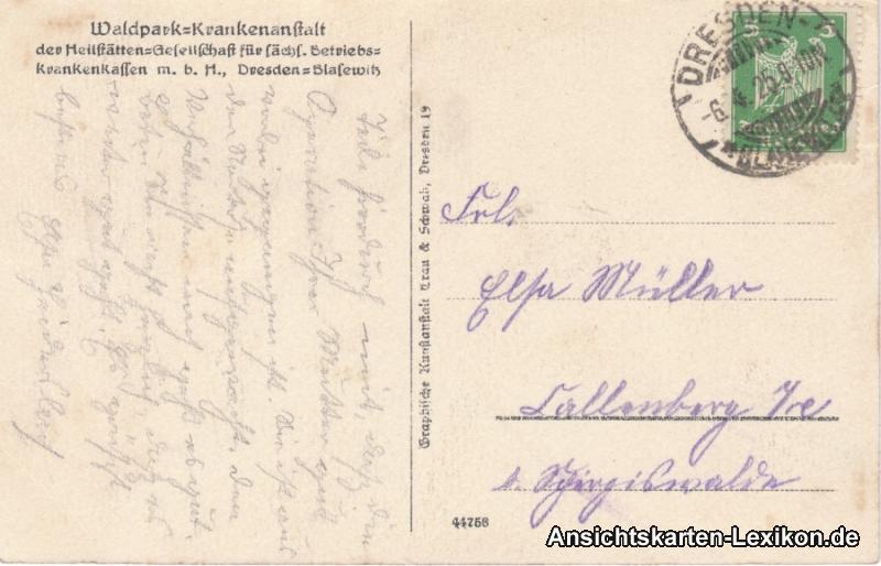 Postcart: Waldpark-Krankenhaus - Blasewitz-Dresden