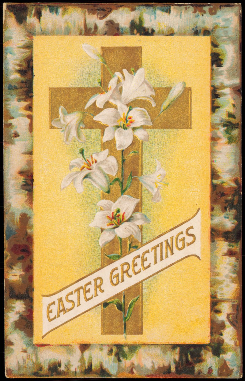 Postcart: Glückwunsch Ostern / Eastern US Card Kreuz Blumen