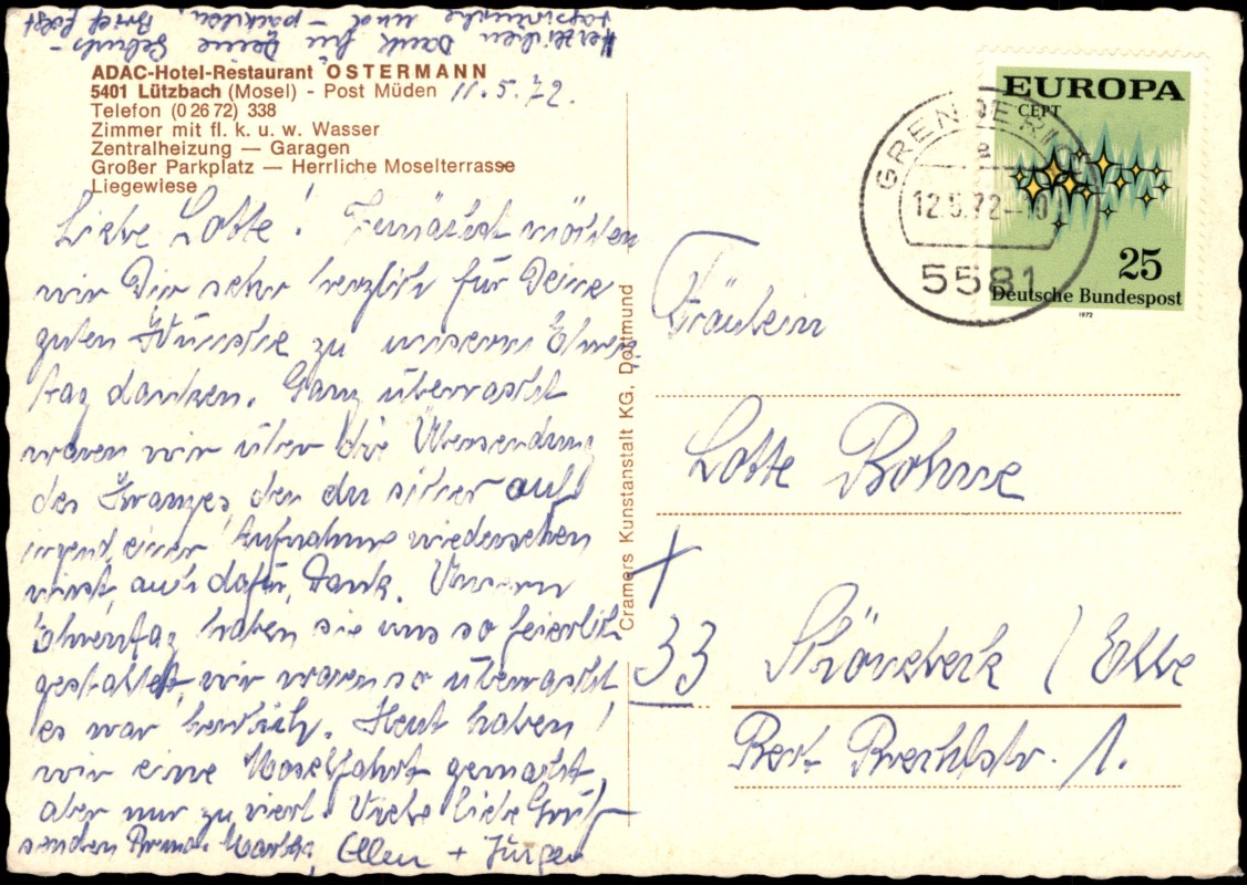 Postcart: Stadt Hotel Schiff OT Lützbach Mosel - Müden (Mosel)