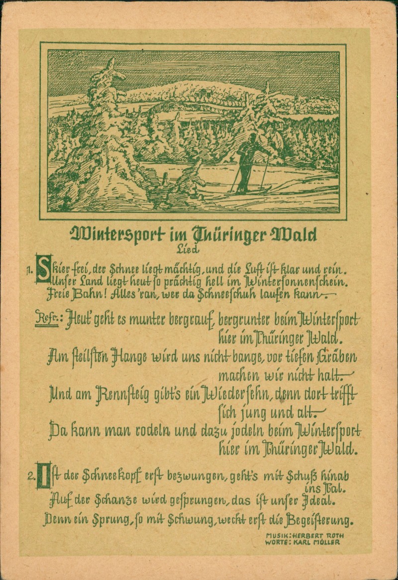 Postcart: Thüringer Wald Liedkarten Wintersport Lied - .Thüringen