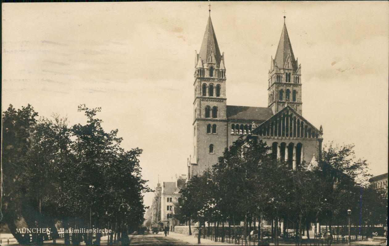 Postcart: Straßenpartie an der Maximiliankirche. - Munich