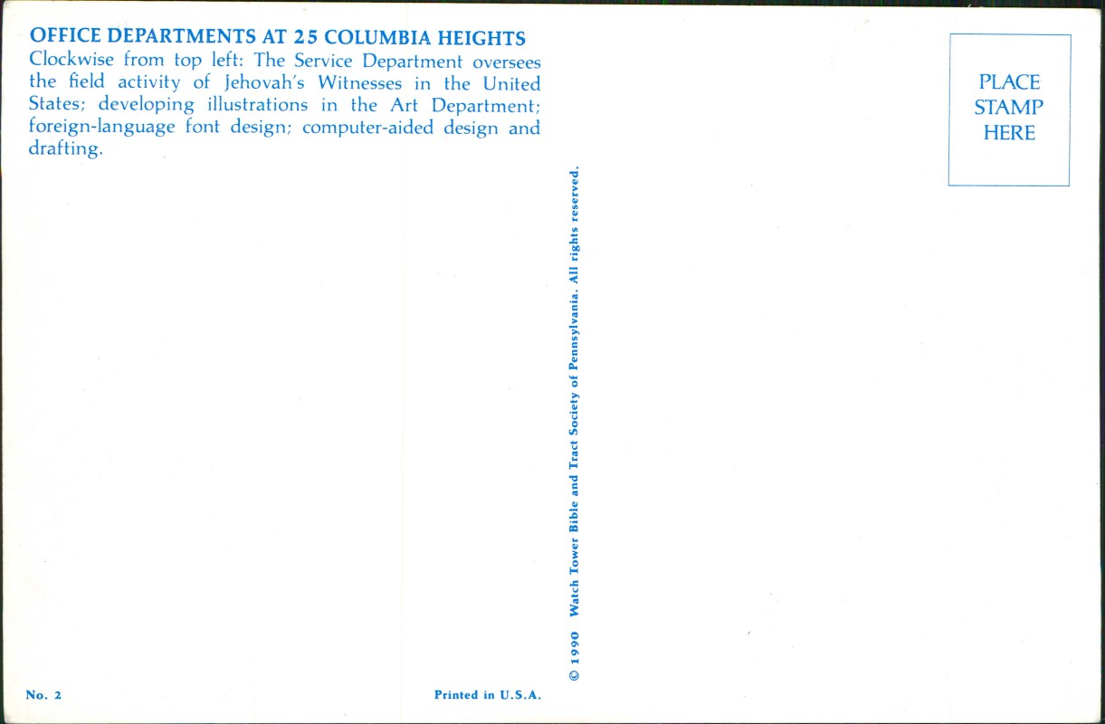 Postcart: OFFICE DEPARTMENTS AT 25 COLUMBIA HEIGHTS Watch Tower - New York City
