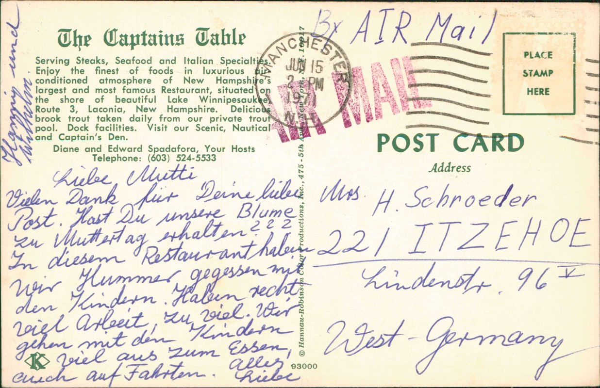Postcart: 2 Bild The Captains Table Restaurant 2 Bild - Laconia (New Hampshire)