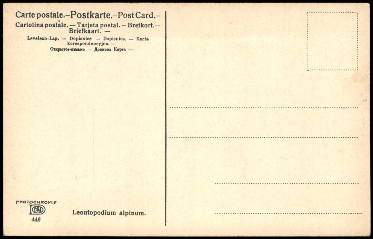 Postcart: Botanik Leontopodium alpinum. Edelweiß Photochromie