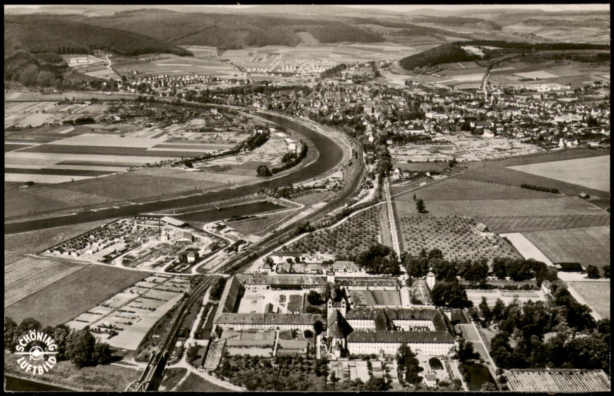 - Luftaufnahme Schloß Corvey Höxter mit Siedlung und Jugendherberge