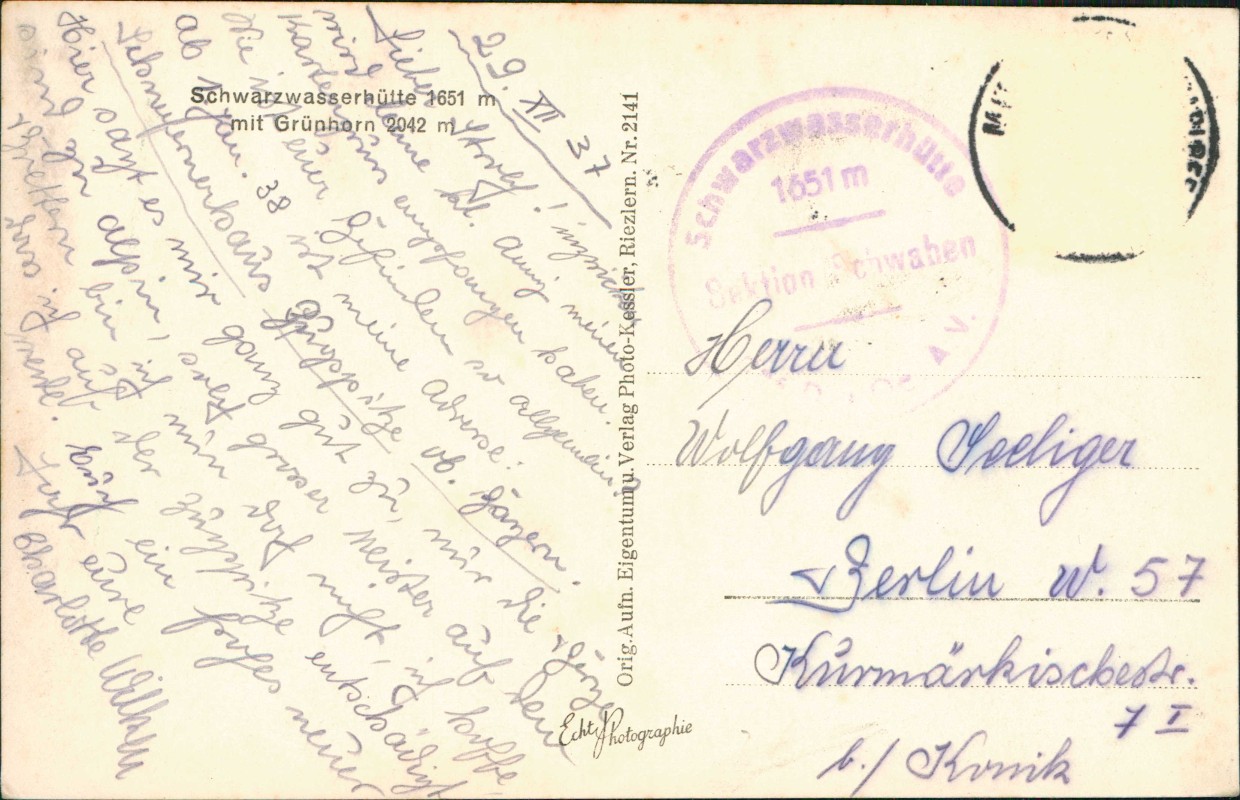 Postcart: Schwarzwasserhütte mit Grünhorn im Winter - Kleinwalsertal-Mittelberg
