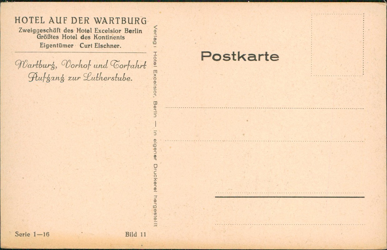 Postcart: HOTEL AUF DER WARTBURG Zweiggeschäft Excelsior Berlin - Eisenach