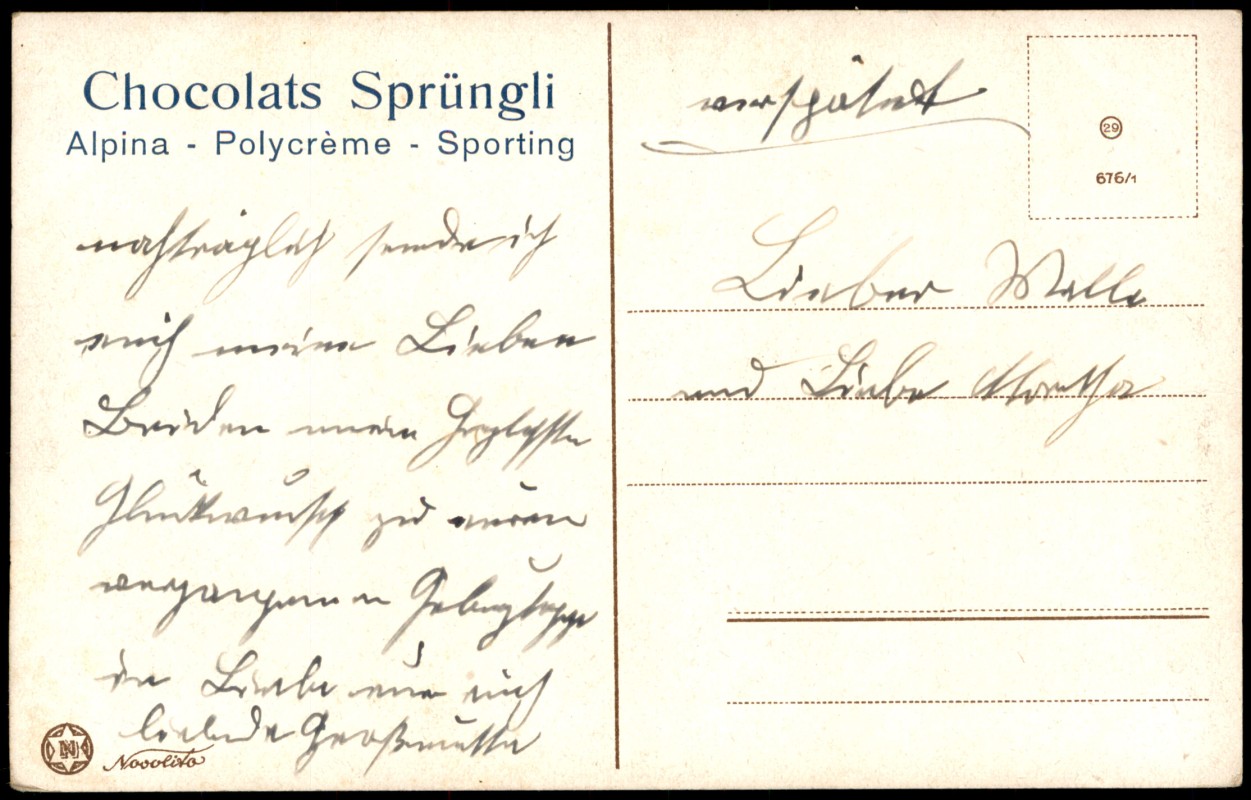 - Chocolats Sprüngli Künstlerkarte Mädchen in Trachten-Kleidung