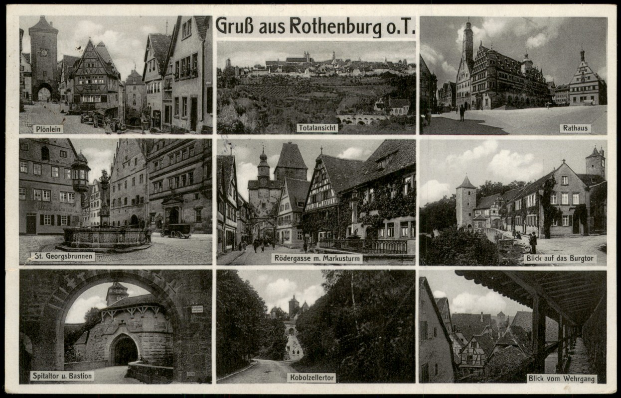 Postcart: Stadtteilansichten Rödergasse Tore Brunnen - Rothenburg ob der Tauber