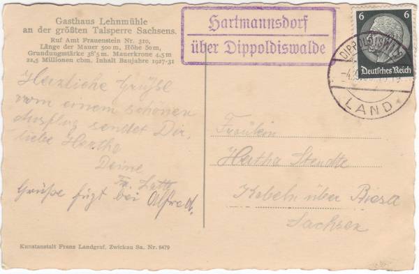 Postcart: Gasthaus Lehnmühle an Sachsens größter Talsperre - Frauenstein (Erzgebirge)