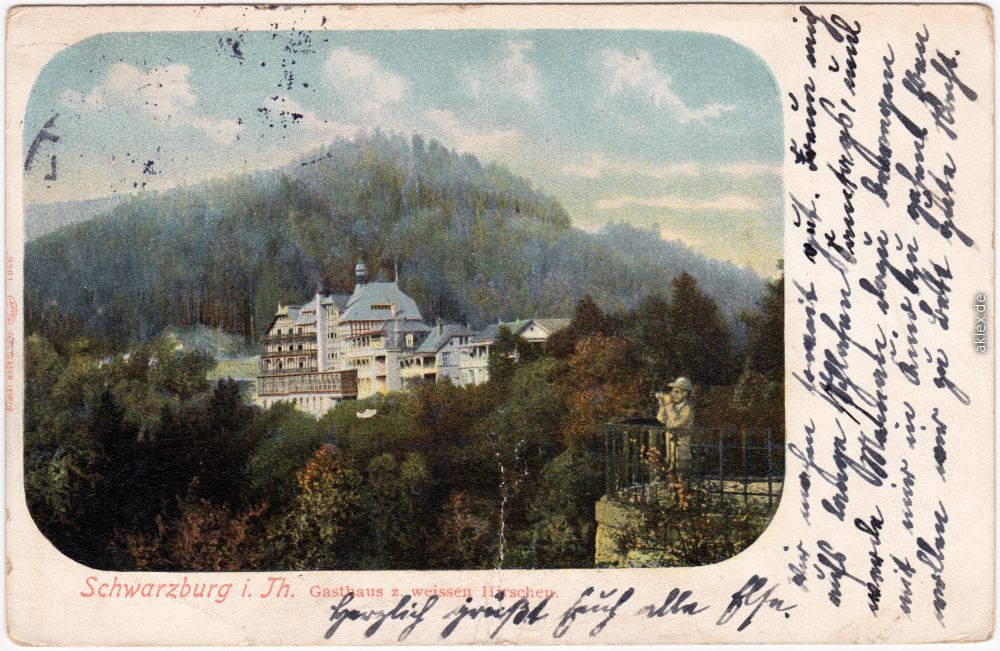 Postcart: Gasthaus zum weissen Hirschen - Schwarzburg