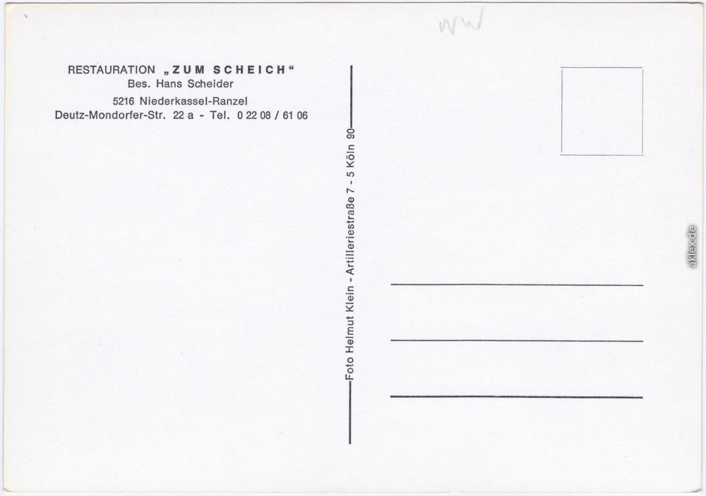 Postcart: Restauration zum Schich Deutz-Mondorfer-Str. 22 a - Ranzel-Niederkassel