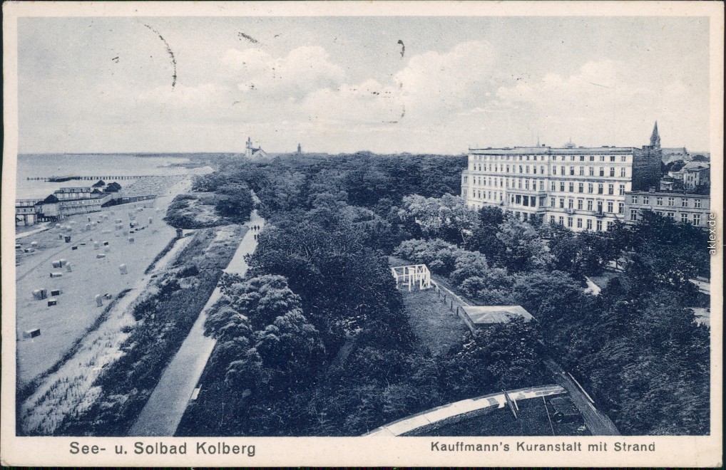 Postcart: Kauffmannskuranstalt mit Strand - Kołobrzeg
