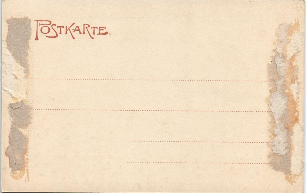 auf der Rückseite Kleberückstände und abgerissenes Papier
