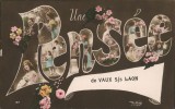 Postcart: Künstlerkarte Kind Mädchen mit Blumen vor Landschaft